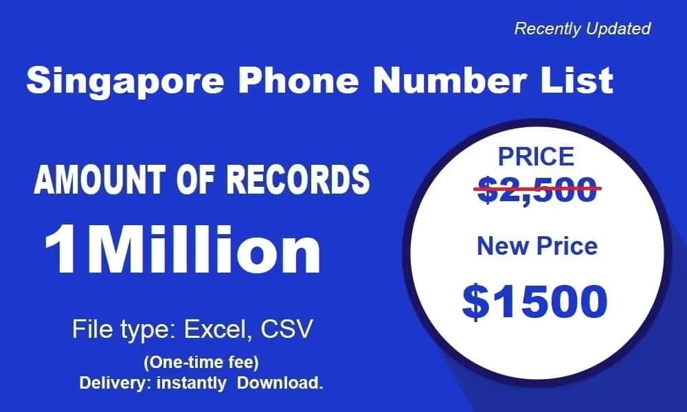 Singapore Phone number list is a complete set of contact numbers in Singapore. It is the largest B2C leads phone number list. You will find the mobile numbers of the majority of the Singaporean people on the list. It provides you with all ways to reach your target clients. As a result, you can spread your marketing campaign to a large extent. It will help give you a large consumer base. So, you can say it can be a blessing for you and your company.
